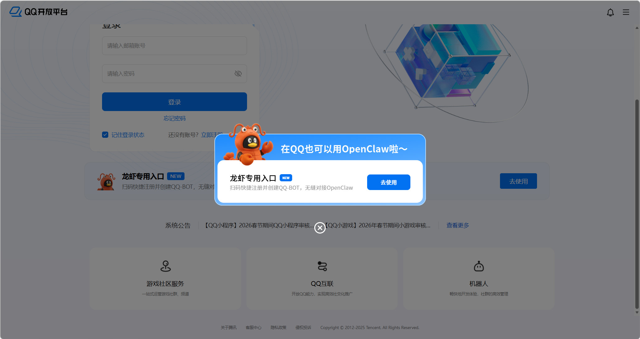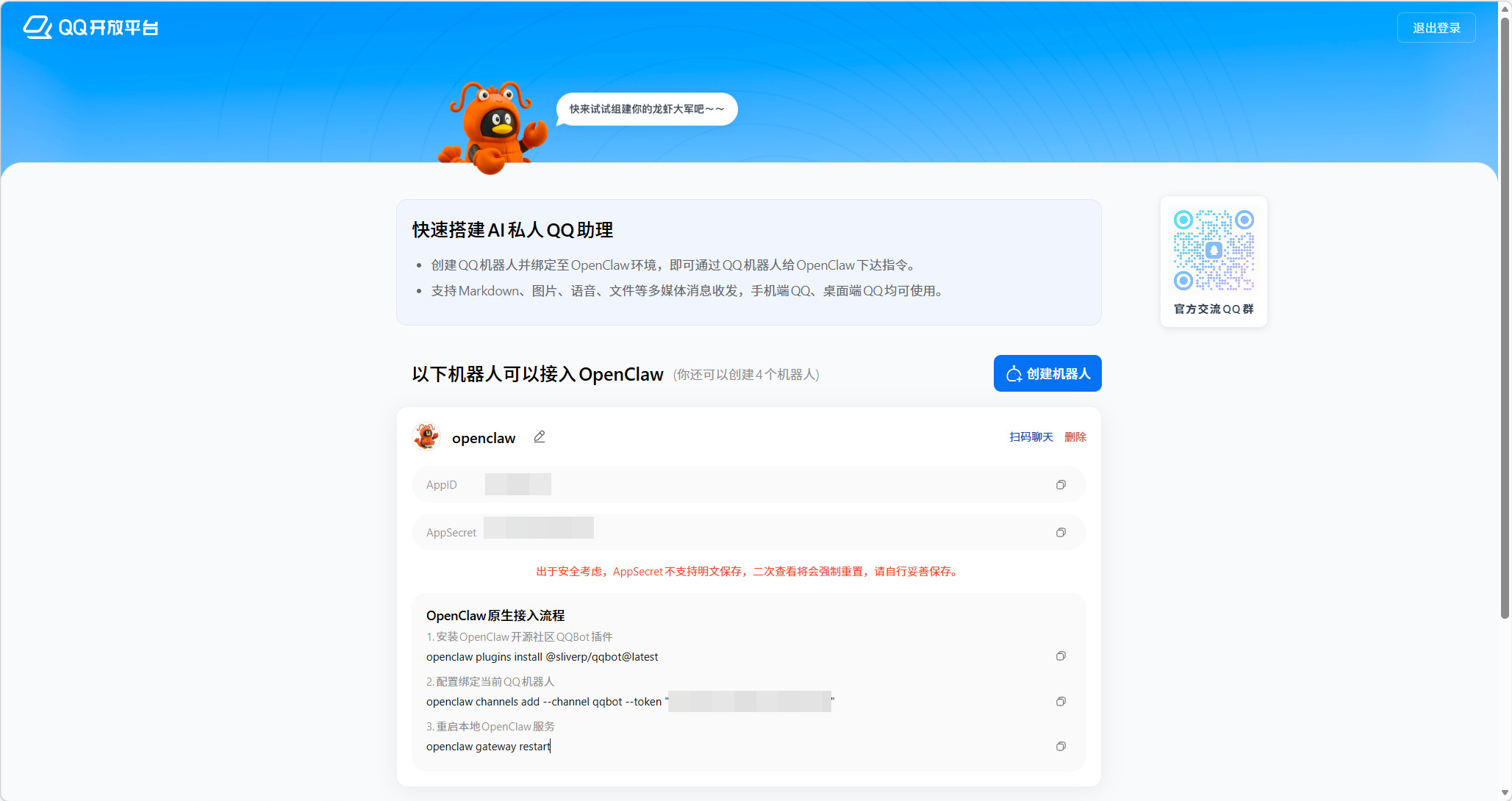 腾讯QQ开放平台正式打通了OpenClaw,几步就能快速接入了。
